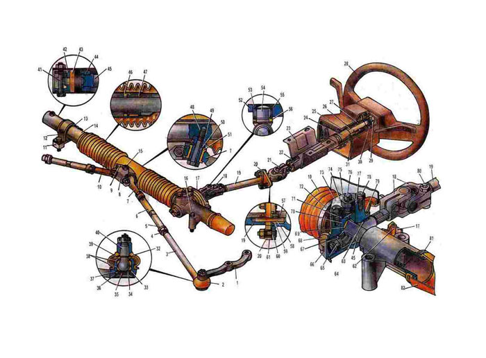 хол рулевого механизма и рулевые шарниры, а